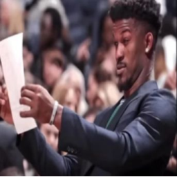 A photo icon of NBA player Jimmy Butler looking at a piece of paper with a skeptical expression.