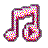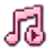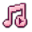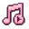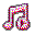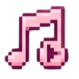 A pink and white pixel art music note icon with a play button symbol inside.