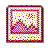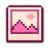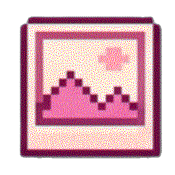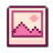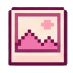 A cute pink and white pixel art picture frame icon with a mountain landscape, part of the Celebi-themed set.