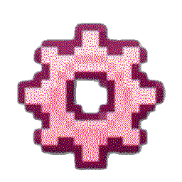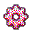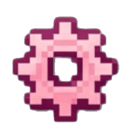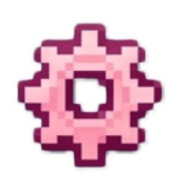 A pixel art gear icon with pink and light pink segments.