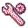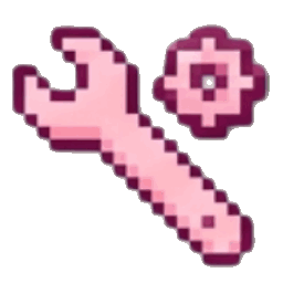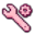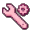 A pixel art settings icon with a pink wrench and a small pink gear.