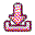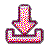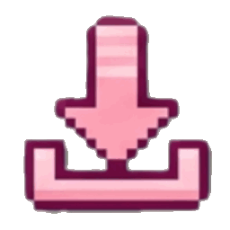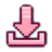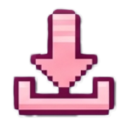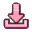 A pixel art download icon featuring a pink downward-pointing arrow and a receiving tray.