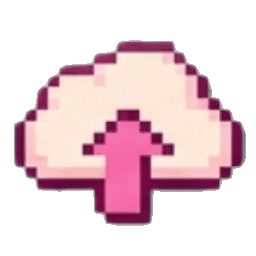 A pixel art cloud icon with a pink upward-pointing arrow, indicating an upload function.