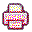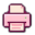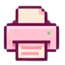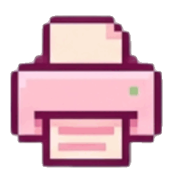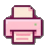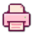 A pink pixel art icon of a printer with a sheet of paper and a green light.