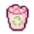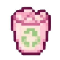 A pink pixel art icon of a trash can with a green recycle symbol.