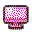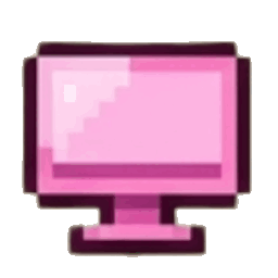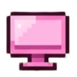 A cute pink pixel art computer monitor icon (on) with a dark outline.