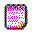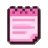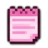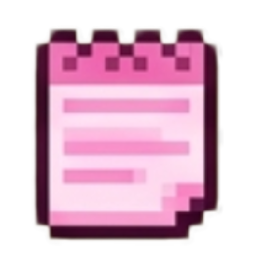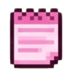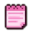 A pink pixel art notepad icon with written lines.
