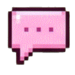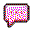A pink pixel art speech bubble icon with three dots, representing messaging or chat.