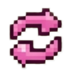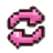 A pink pixel art refresh or sync icon, consisting of two curved arrows in a circular motion.