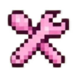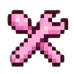 A pink pixel art icon of crossed tools, including a wrench and a spoon.