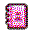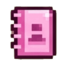 A pink pixel art icon representing a contacts book with a user silhouette.