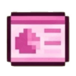 A pink pixel art icon representing a presentation slide with a pie chart.