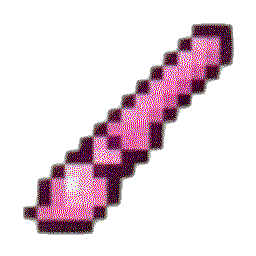 A pink pixel art paintbrush icon with a dark outline.