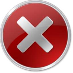 A glossy red circular icon containing a silver 'X' symbol, typical of Windows 7 error messages.