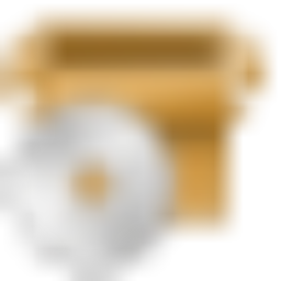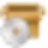 A classic installation icon featuring a brown cardboard box with a silver disc in front, representing a setup or software installation process.